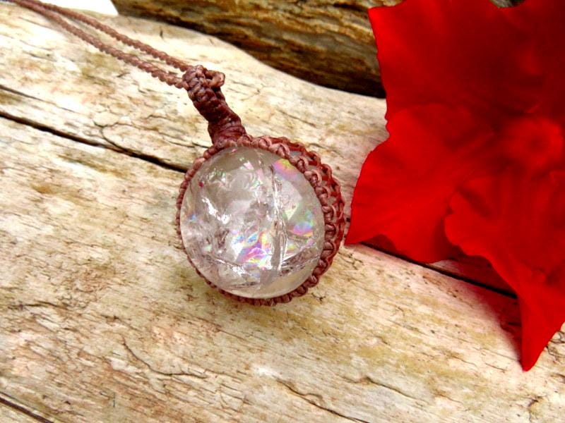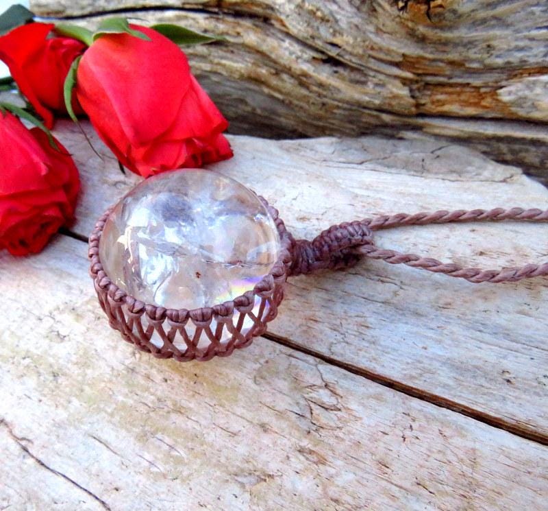 ✨ Fantastic clear Quartz sphere crystal necklace - This stunning Quartz crystal has a lot of magic inside and is full of rainbow prisms 🌈 This crystal is tingling with excitement to find its new owner✨ - Wrapped 100 % securely using the art of knot -tying or 'macrame.' **prettier in person!