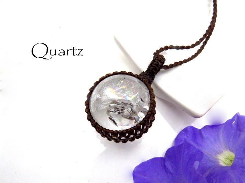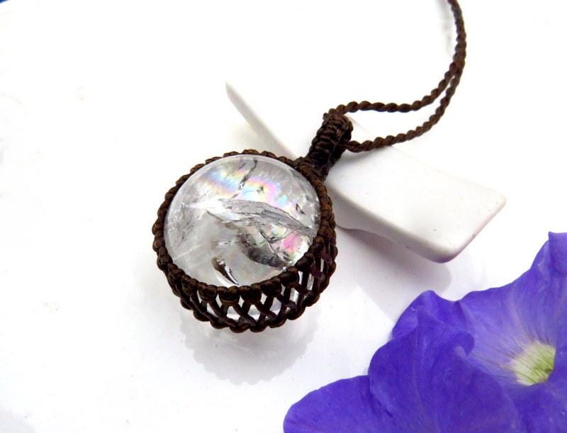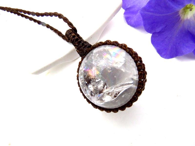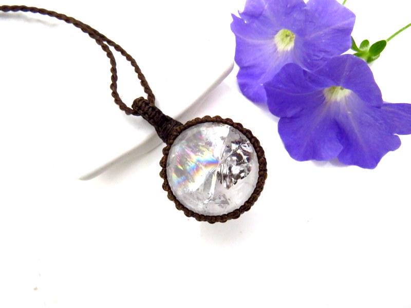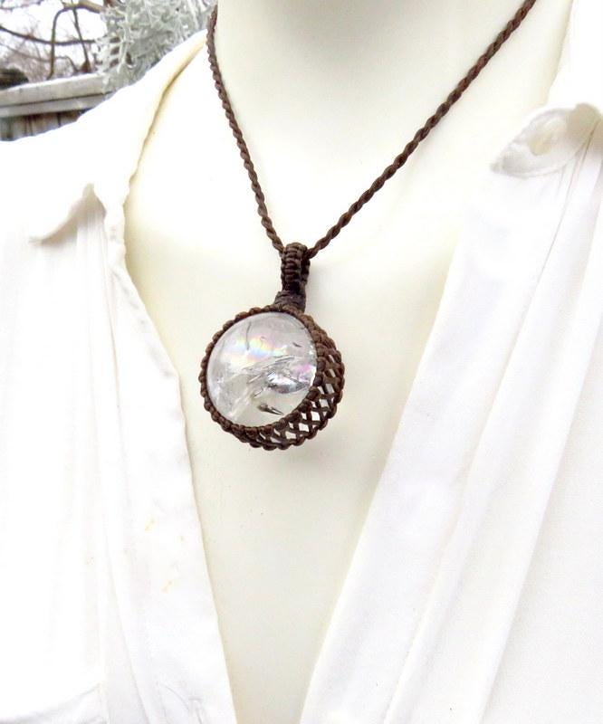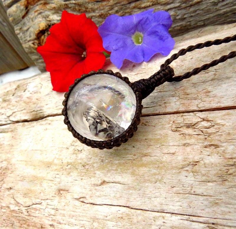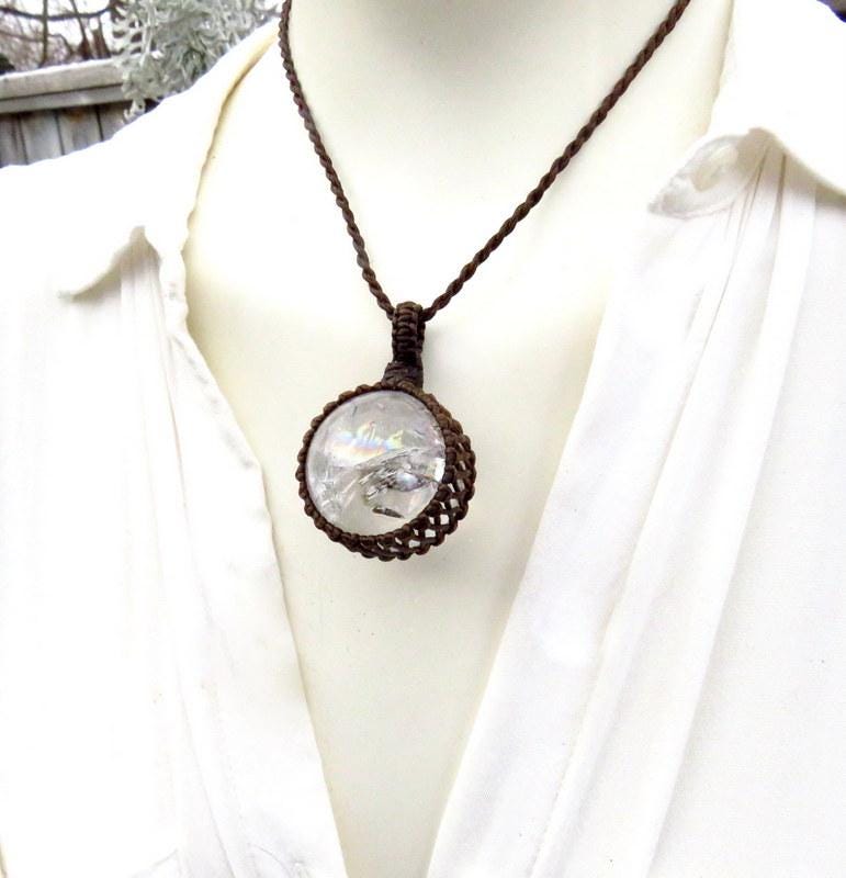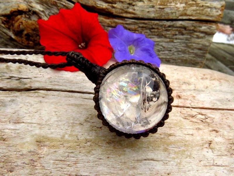 ✨ Fantastic clear Quartz sphere crystal necklace - This stunning Quartz crystal has a lot of magic inside and is full of rainbow prisms 🌈 This crystal is tingling with excitement to find its new owner✨ - Wrapped 100 % securely using the art of knot -tying or 'macrame.' **prettier in person!