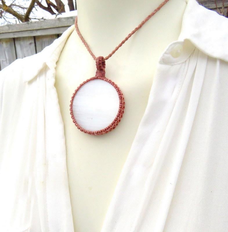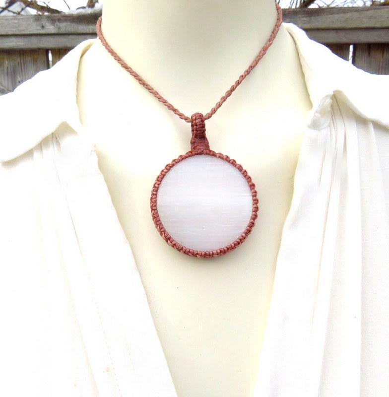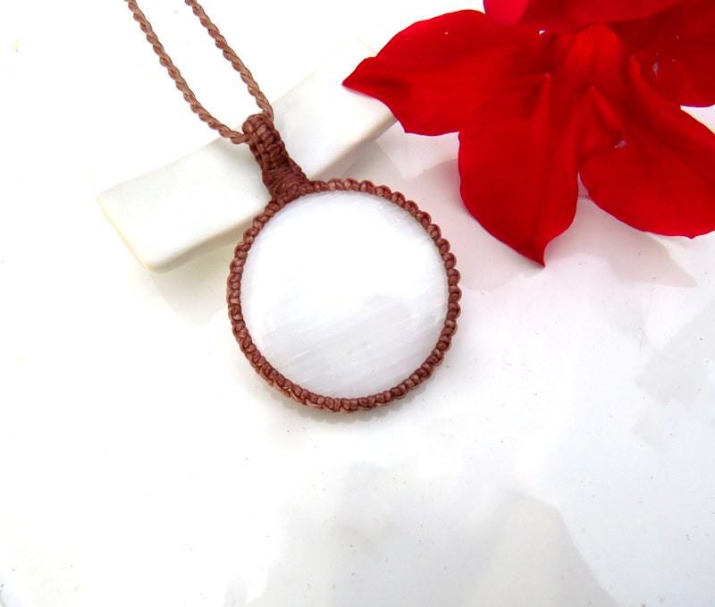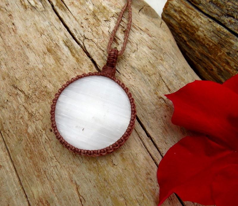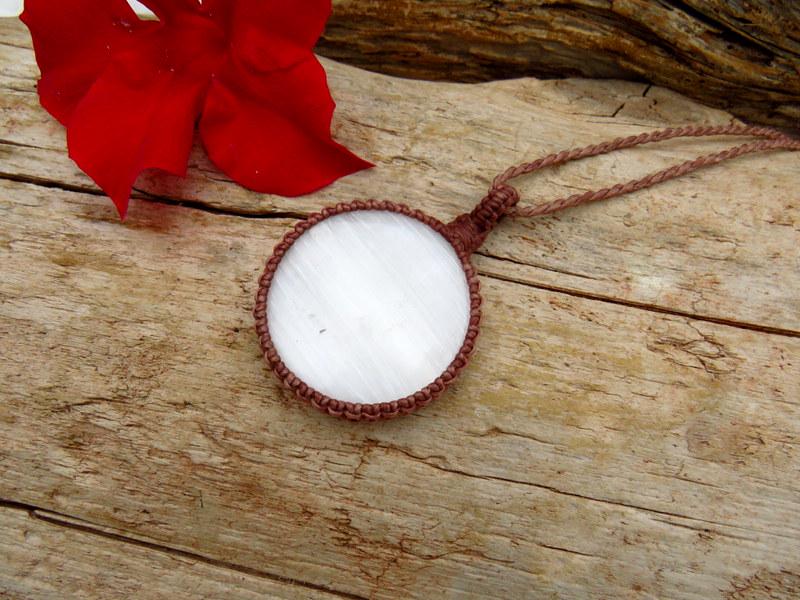 💎 Selenite pendant is 4.9 cm in length (not including loop) and 4.9 cm (widest point)