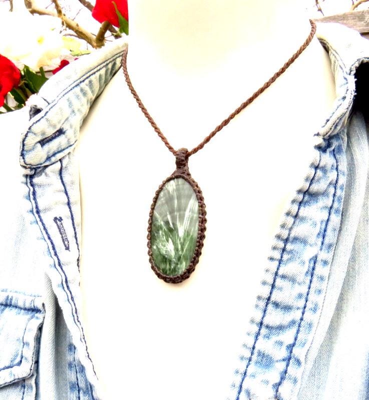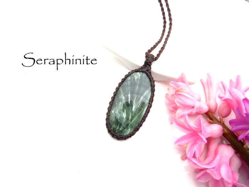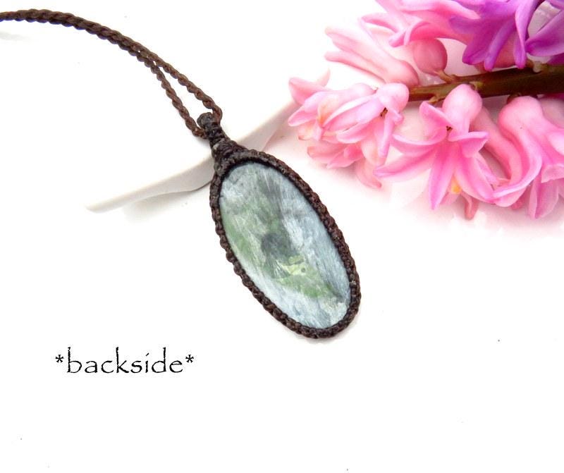 Seraphinite gemstone macrame necklace, seraphinite pendant necklace
