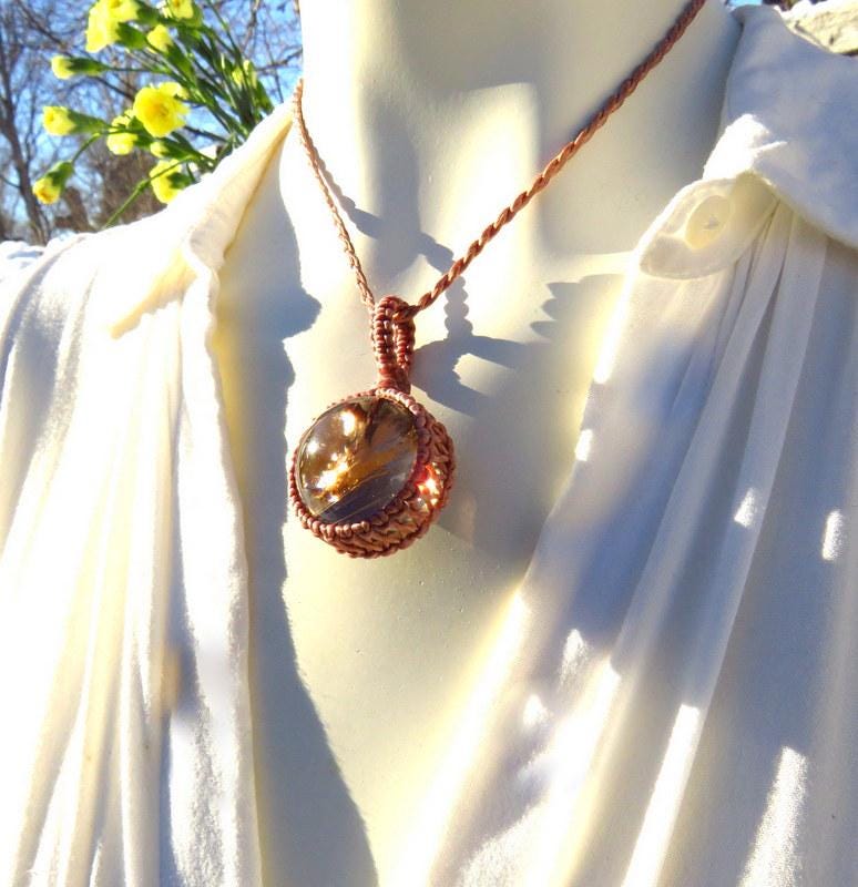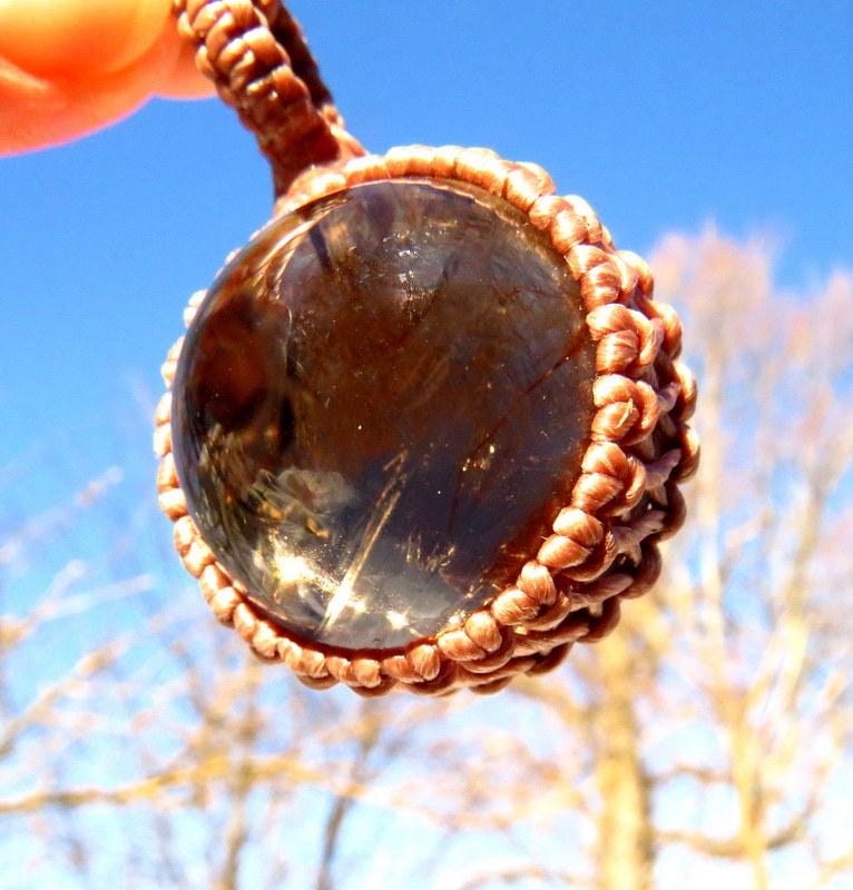 Smokey Quartz crystal necklace - Spectacular Smokey Quartz sphere - grounding, golden brown ✨