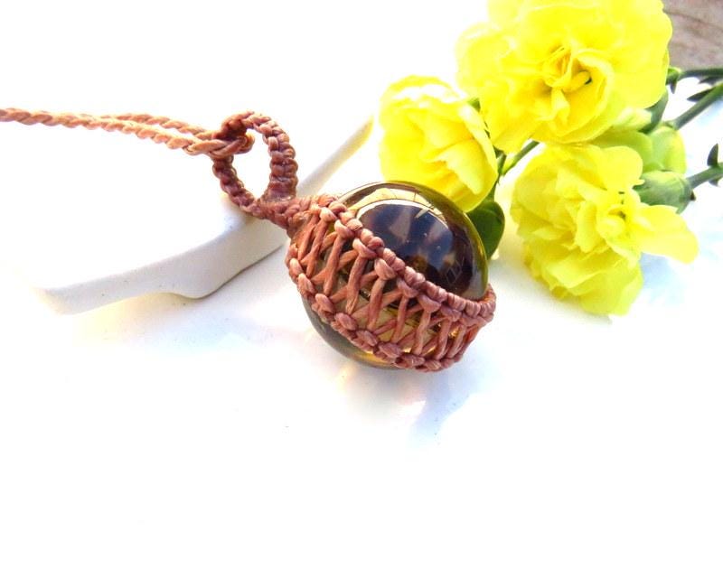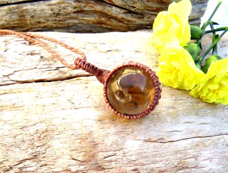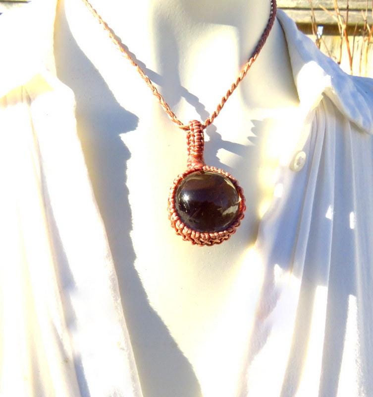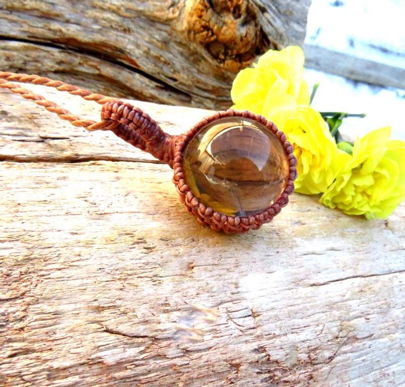 Smokey Quartz crystal sphere necklace, macrame gemstone jewelry