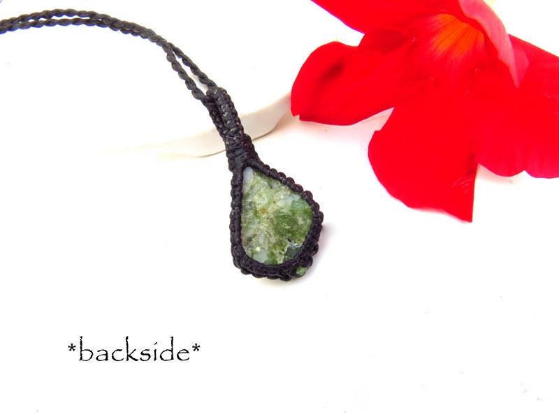 Raw Peridot crystal necklace, macrame necklace