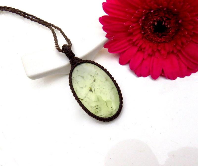 ⭐STONE OF PROPHESY, INTUITION & REALIZING YOUR TRUE PROTENTIAL ⭐ Superb quality Prehnite macrame necklace - Dreamy, translucent lime green with unique inclusions- classic, oval shape✨ !