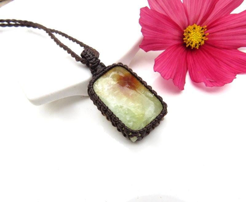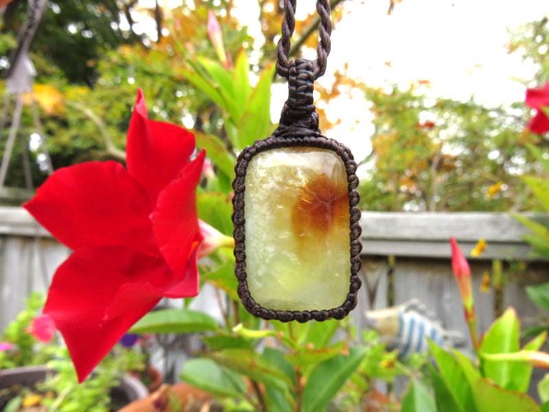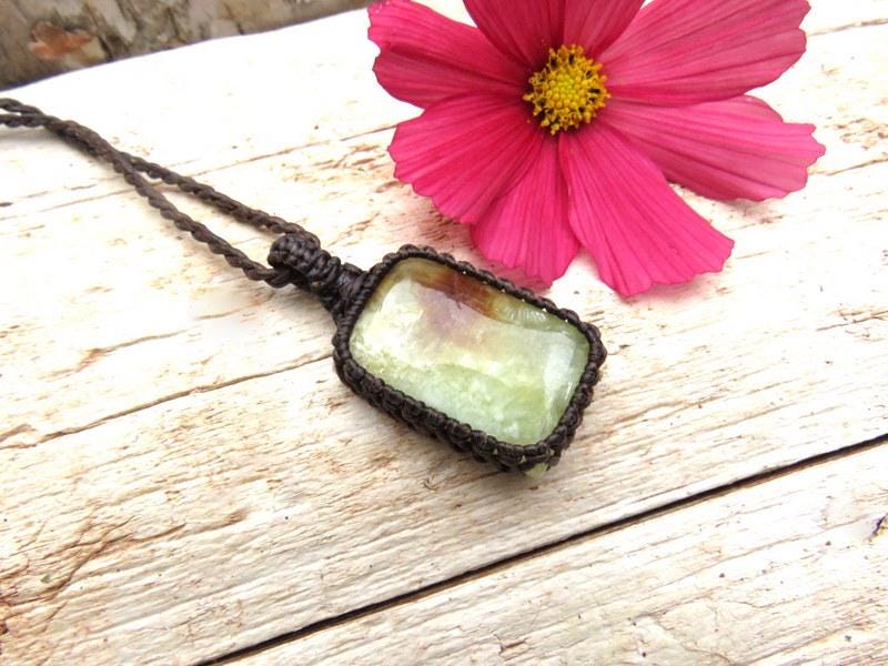 ⭐STONE OF PROPHESY, INTUITION & REALIZING YOUR TRUE PROTENTIAL ⭐ Lovely yellow Prehnite macrame necklace - Dreamy, yellow with unique inclusions- unique shape✨ !