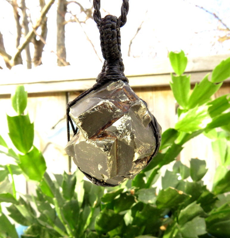 🙏ROOT CHAKRA GROUNDING & SELF - CONFIDENCE 🙏 This listing is for a gorgeous cubic Pyrite macrame necklace! Shiny gold Pyrite crystal with a unique cubic structure - super chic and eye-catching!