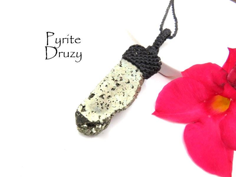 Flashy golden Pyrite druzy crystal macrame necklace - - a very funky and chic piece ! A gorgeous golden druzy Pyrite - full of twinkles.✨