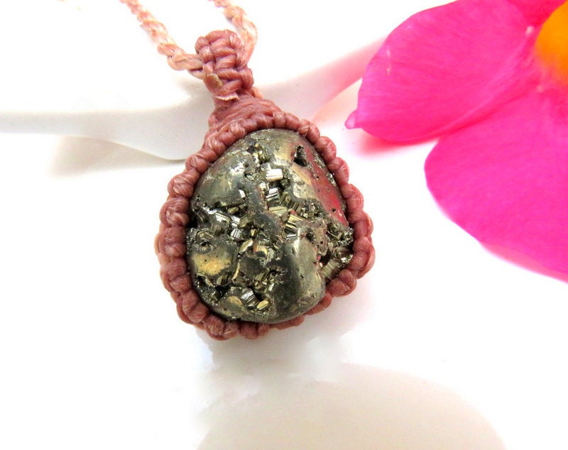 This listing is for a sweet and dainty Pyrite crystal macrame necklace - Glittery gold Pyrite that twinkles in the light - super chic and eye-catching !