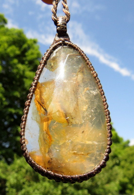 NEW TO OUR COLLECTION ✨ Fantastic & superb quality Dendritic Quartz crystal macrame necklace - This a an A*M*A*Z*I*N*G Quartz filled with black dendritic 'fern like' inclusions ✨ The color is warm golden yellow and earthy brown 🧡💛 An absolute treasure piece ✨ *Prettier in person -**price reflects the rarity of Dendritic Quartz 💎
