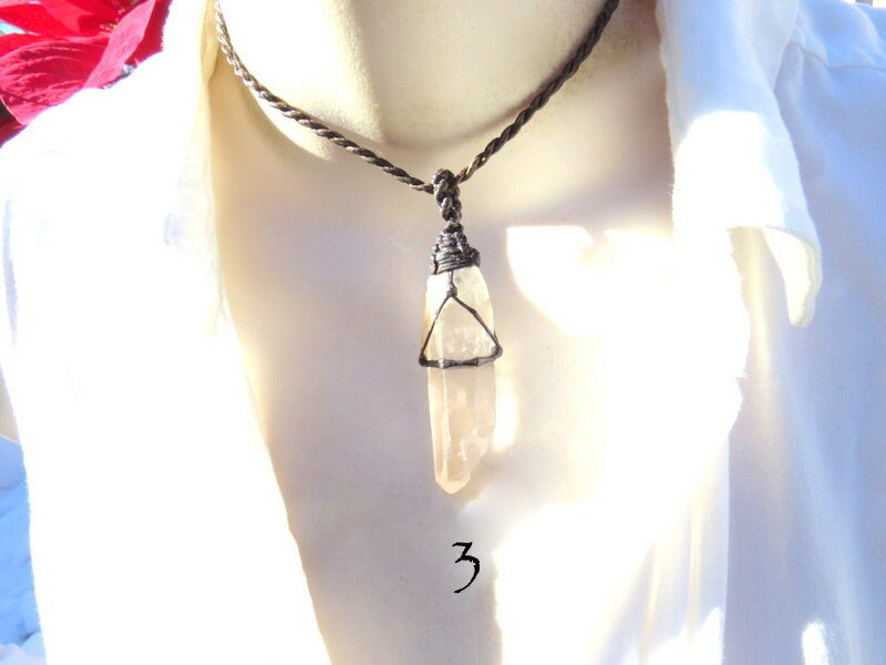 Materials: quartz, clear quartz, crystal, quartz crystal, waxed cord.
