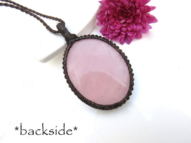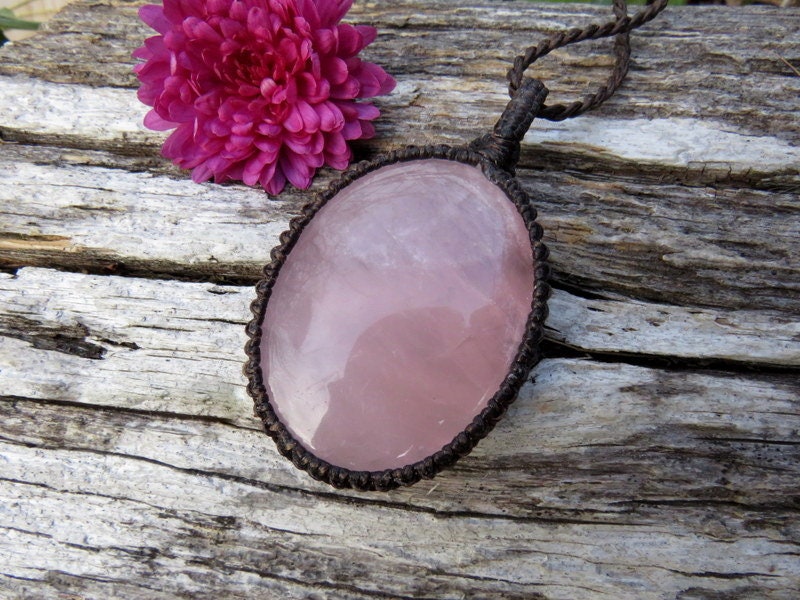 💗SELF-LOVE & COMPASSION 💗 Beautiful and large Rose Quartz Macrame Necklace -This is a beautiful, translucent rosy pink Rose Quartz crystal. An important stone for helping us to raise our vibrations of love and compassion - for ourselves and others ~ : ) *You will receive the exact crystal in photos #1-6