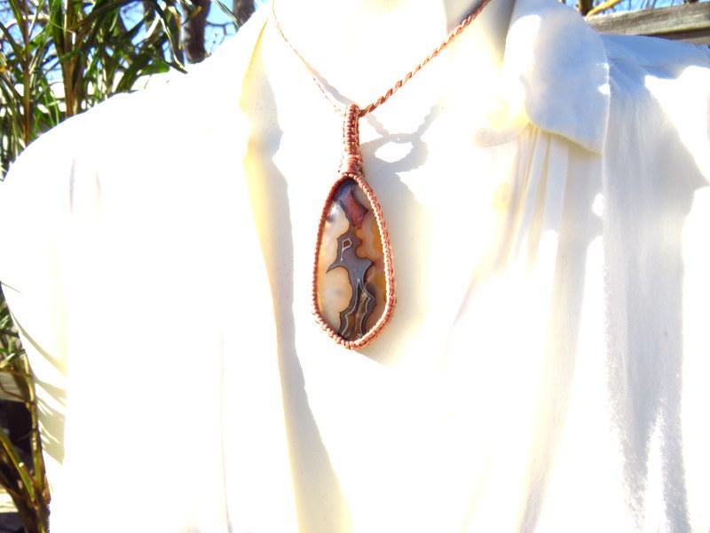 ✨WOW✨Fantastic and RARE Turkish Stick Agate macrame necklace - One of a kind find from Turkey ! Translucent Agate with amazing patterns - very sci-fi ! We are serious when we say its wowza 💎