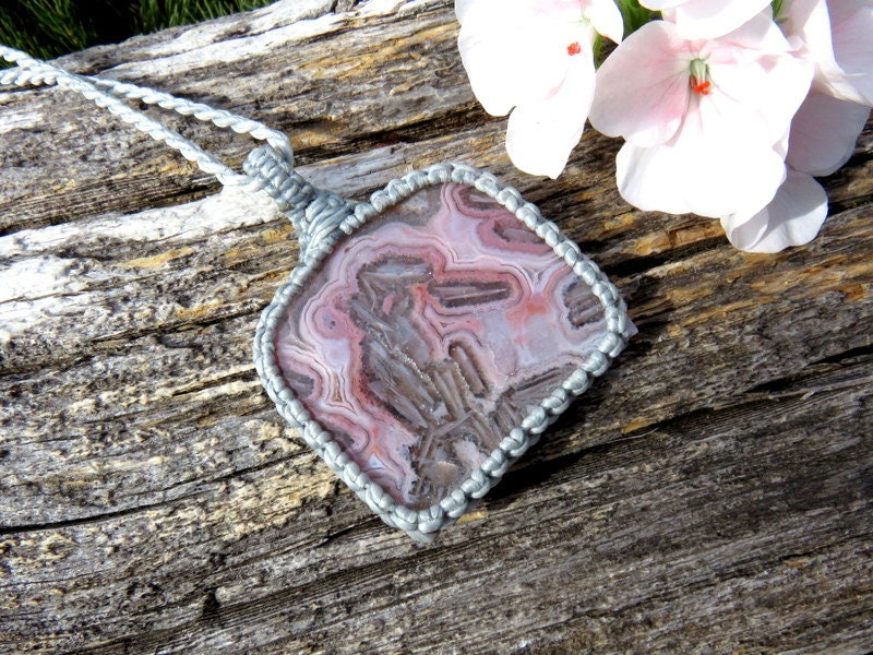 Spectacular Pseudomorph Agate macrame necklace - One of the most enchanting Agates we have had in our collection! Super rare pink pseudomorph Agate with very intriguing patterns. Wrapped in our silver cord that really makes the color pop! - one of a kind ! ✨