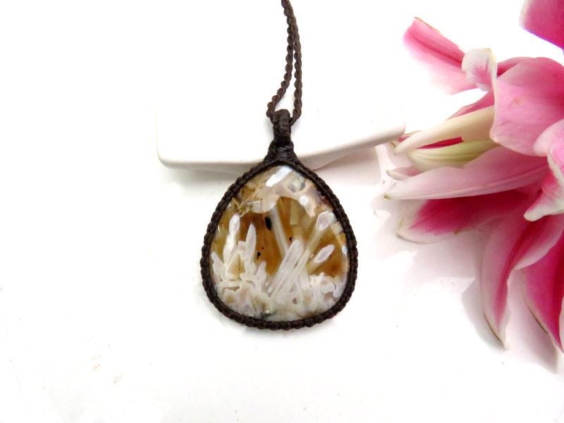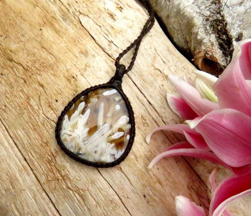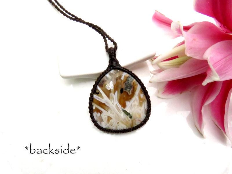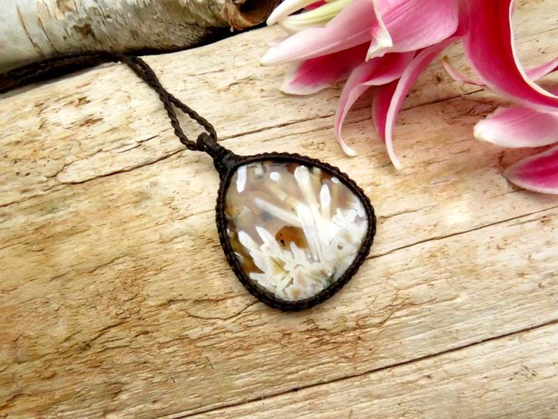 Fantastic and RARE Turkish Stick Agate macrame necklace -✨ Phenomenal✨ This rare Agate from Turkey - golden brown with beautiful gray formations - incredible addition to the collectors treasure box ✨ Minor , natural imperfections.