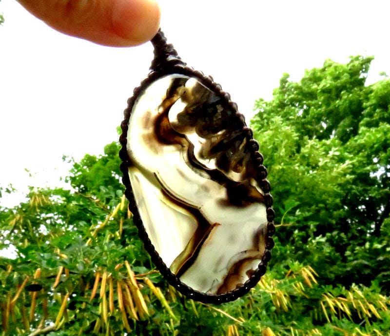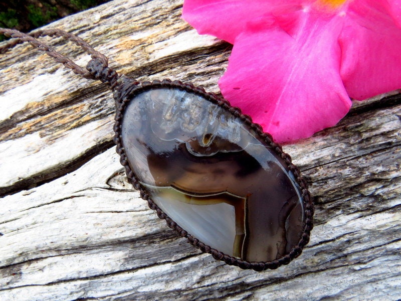 This listing for for a spectacular Turkish Agate macrame necklace - gorgeous layers of various earthy browns with pretty translucent areas and patterns!