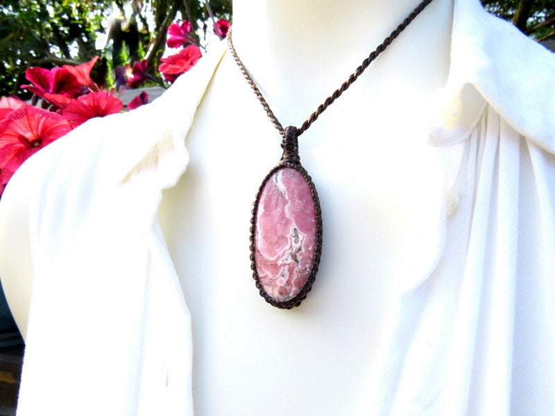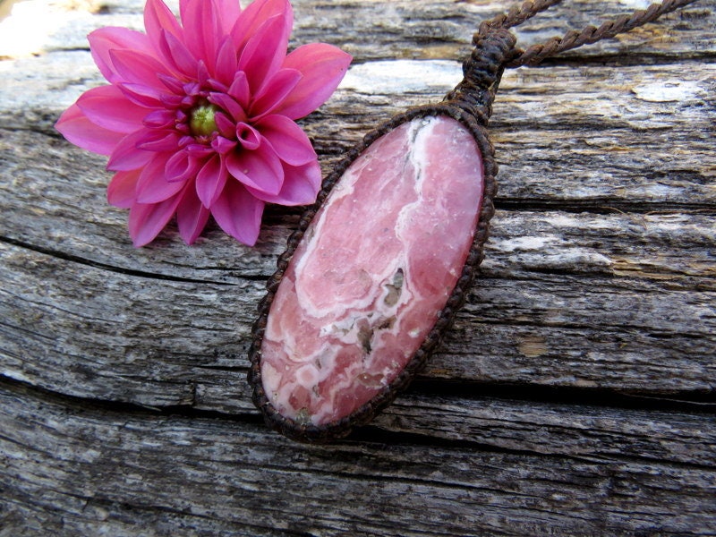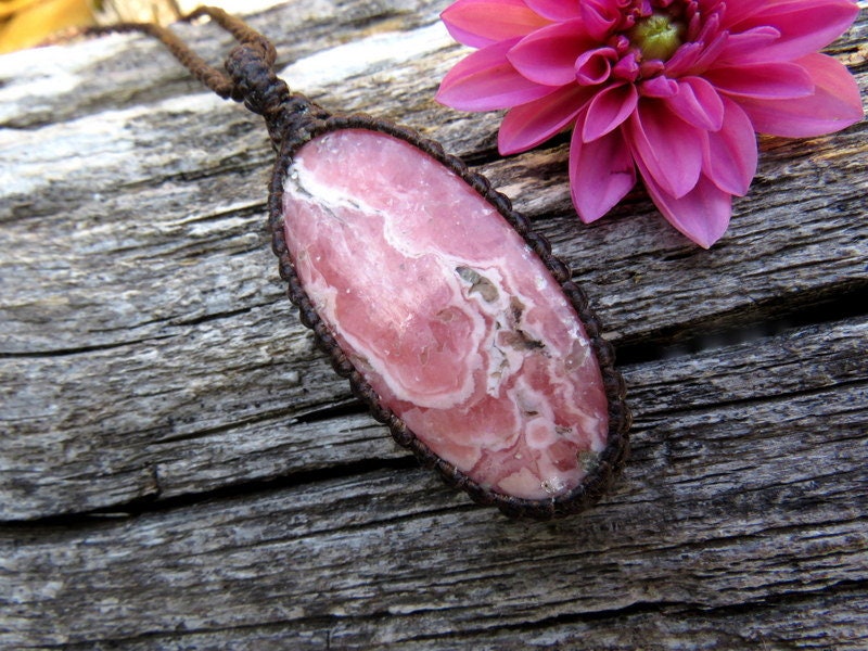 SUPERB quality Rhodocrosite macrame necklace -gorgeous pink with lovely patterns - reminiscent of a roses orpeonies 🌹 Rhodocrosite evokes feelings of love, calm, sweetness - so lovely ! Sourced in Argentina.