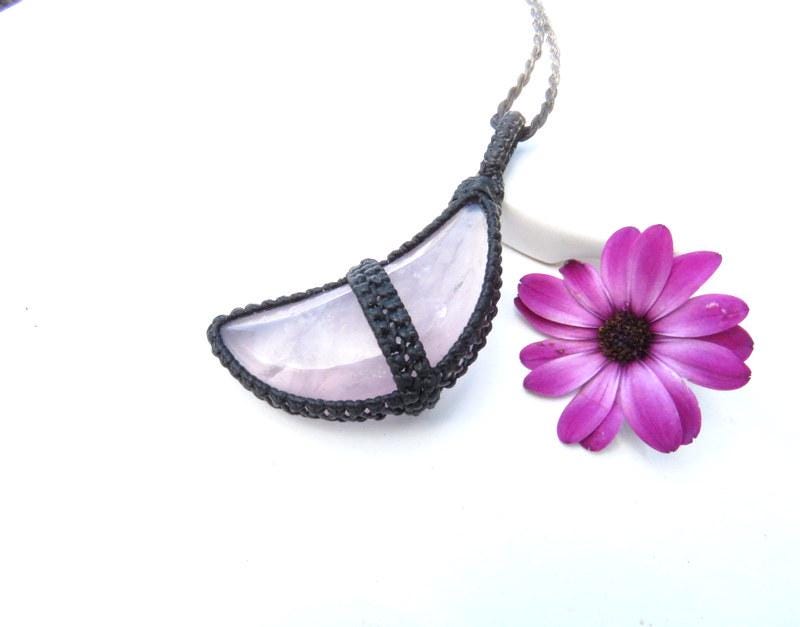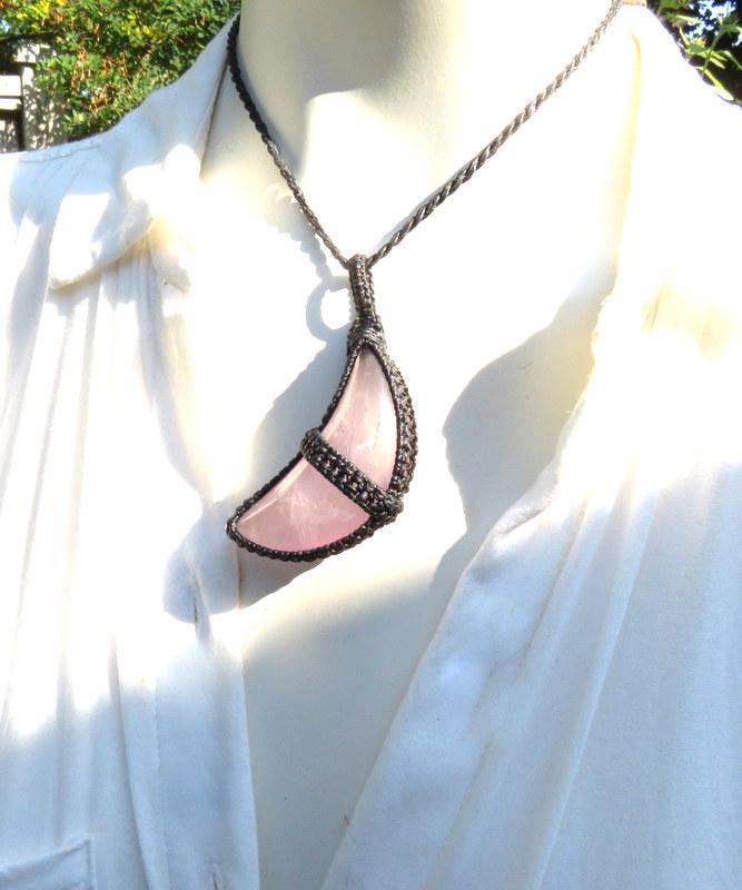 The PERFECT Rose Quartz macrame necklace - Beautiful pink color and carved into a lovely moon shape.🌙 A generous size 🌺 An important stone for helping us to raise our vibrations of love and compassion - for ourselves and others ~ : ) You will receive the exact stone in photos #1-7 and the video.