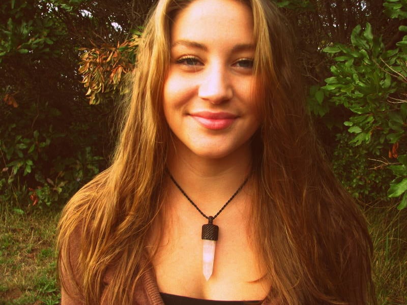 Materials: quartz, rose quartz, crystal, waxed cord.