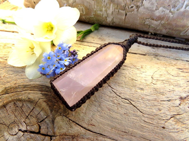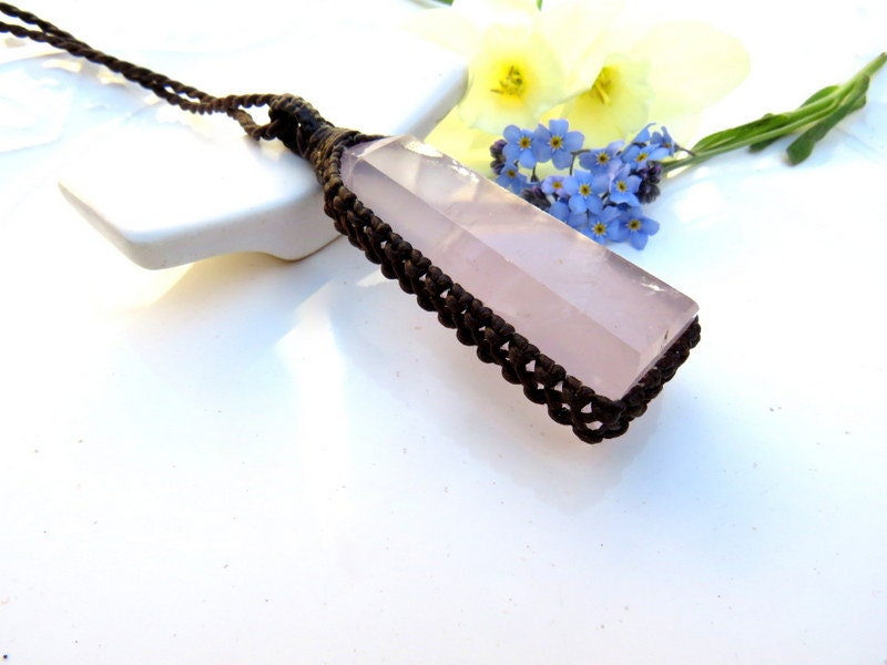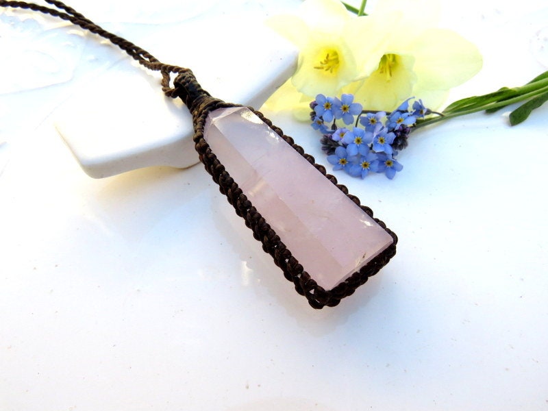 🌺SELF LOVE & COMPASSION 🌺 Beautiful! Super quality Rose Quartz macrame necklace - lovely - soft pink Rose quartz crystal point - a generous size. An important stone for helping us to raise our vibrations of love and compassion - for ourselves and others ~ : ) You will receive the exact crystal in photos # 1-6 and the video.
