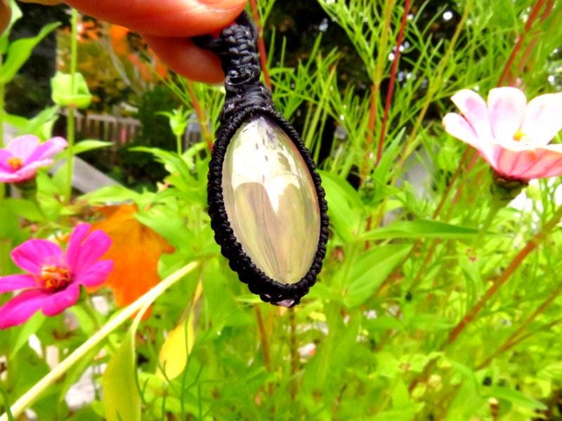 == We wrap or 'set' our semiprecious stones using the art of knot-tying or ' macrame '