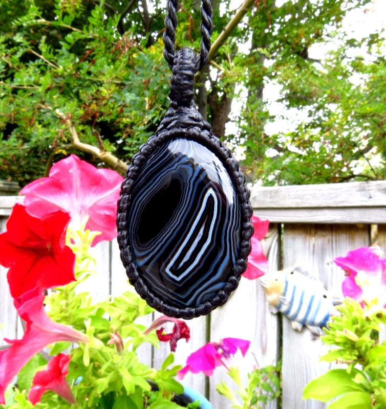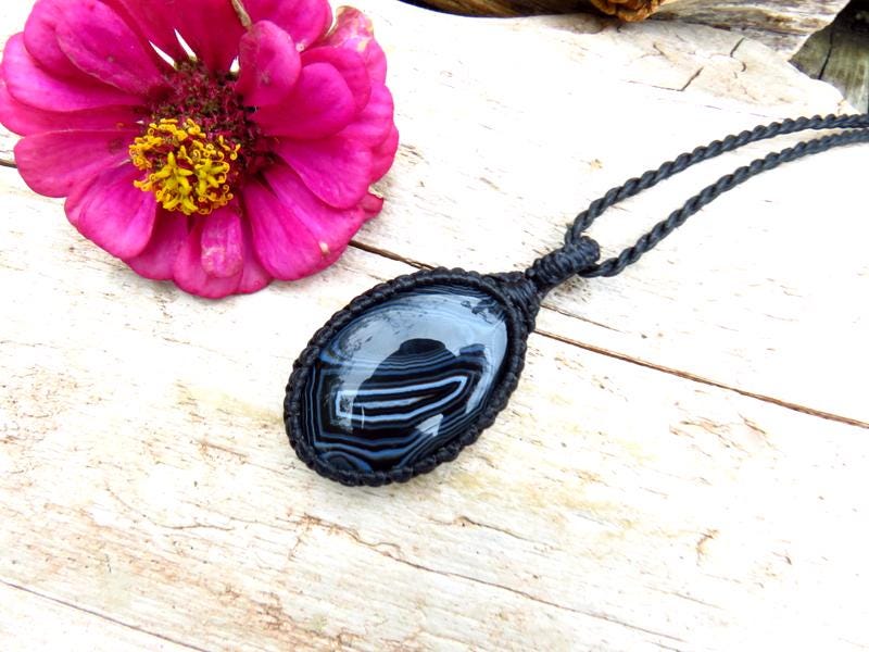 Exceptional Sardonyx gemstone necklace - a very unique Sardonyx gemstone with mesmerizing banding in classic black, gray and brown ! You will receive the exact stone in photos #1-7 and the video. Sardonyx is a best seller in our shop 🖤✨🖤