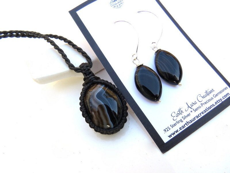 ✨The stone of Happiness ✨ This listing is for a lovely Sardonyx necklace and earring set - Classic, minimalist style ! Sardonyx is a mysterious deep black with gorgeous banding. **Earrings are .925 Sterling Silver