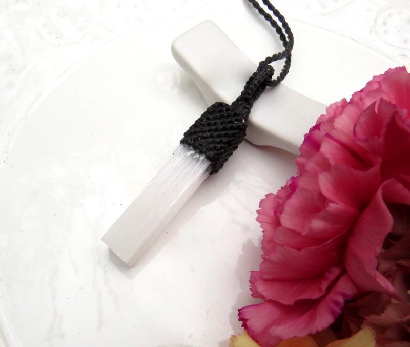 * Selenite pendant is a generous 6.1 cm in length (not including loop) and 1.5 cm (widest point)