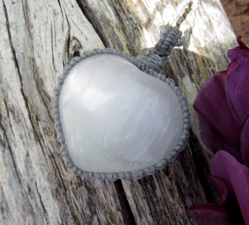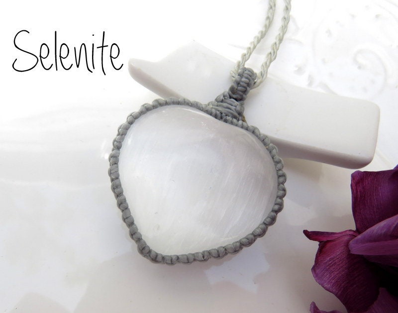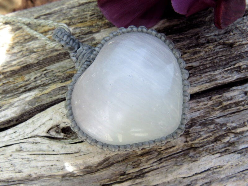 ✨PEACE, GROWTH & MENTAL FOCUS ✨Soooo lovely ! Selenite heart macrame necklace - A moonlight white - the Greek word Selenite means 'moon rock' or 'moon stone' - and this piece certainly has a pearly lustre that glows like the moon ! You will receive the exact crystal in photos #1-5 and the video.