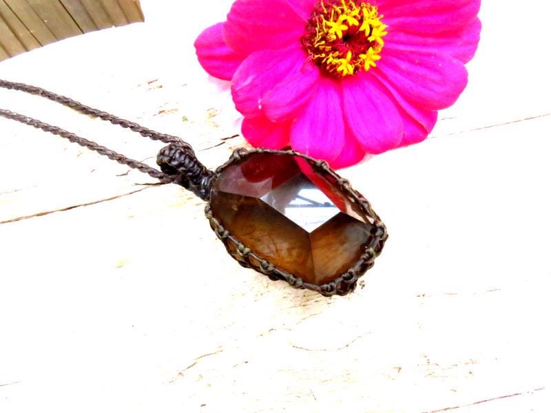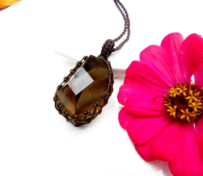 New ! 🌹Lovely faceted Smokey Quartz necklace - The facet cut gives this smoky quartz a brilliant flash and a mystical touch - translucent smoky brown in color - unique freeform shape - chic and earthy !