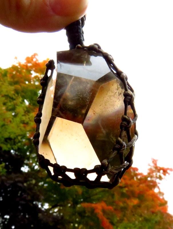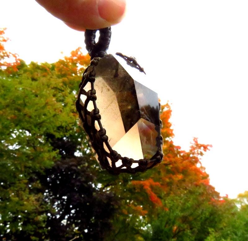 Materials: smokey quartz, quartz, semiprecious stones, waxed cord, smoky quartz.