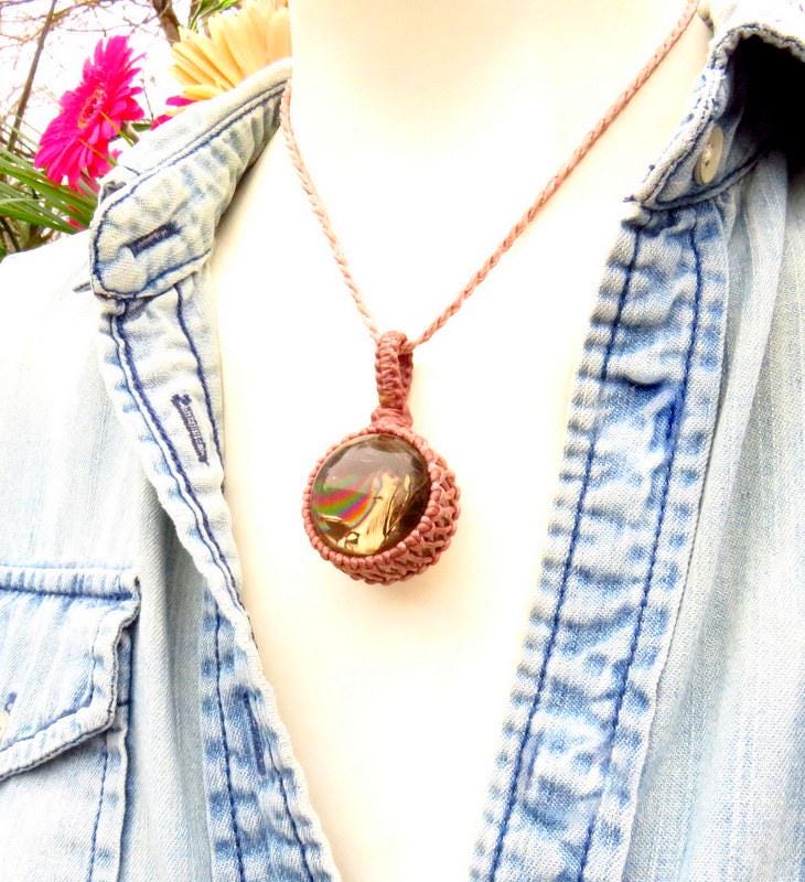 == We wrap or 'set' our semiprecious stones using the art of knot-tying or ' macrame '