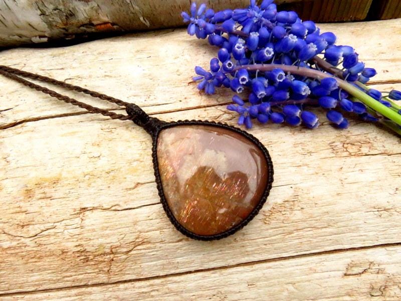 Sunstone macrame necklace - bringing a playful cosmic dance to your gemstone collection. This crystal is like a burst of positive energy, radiating warmth and vitality. Its glittering inclusions resemble the golden flickers of a sunset - making it impossible not to smile when you're in its sunny presence. ๐ŸŒž **RARE FIND**