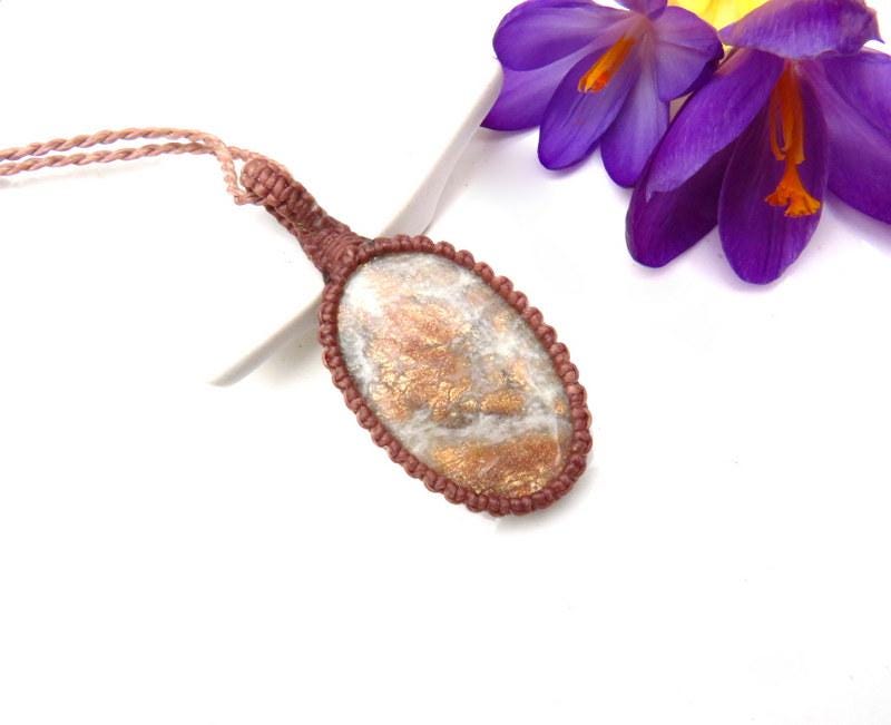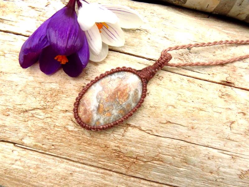 Materials: sunstone, cabochon, gemstones, semiprecious stone, healing stones, waxed cord.