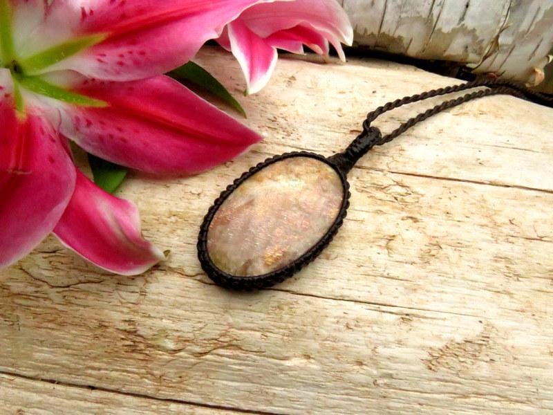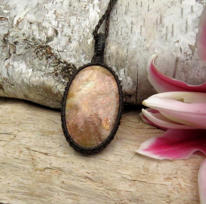 Superb quality - Sun-shiny Sunstone macrame necklace - Lovely, tropical peachy-orange with the most beautiful, warm flash just like the sun ! Classic oval shape - Summery sun-shiny energy !🧡 **prettier in person!