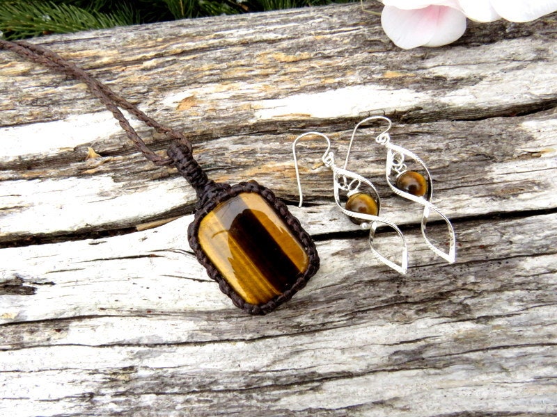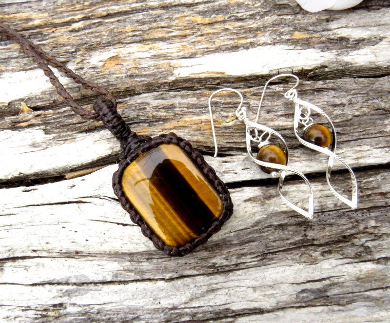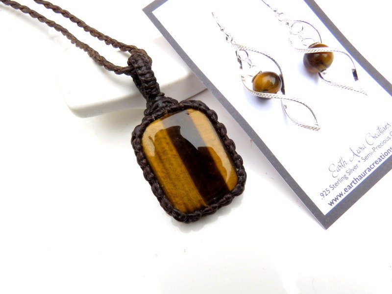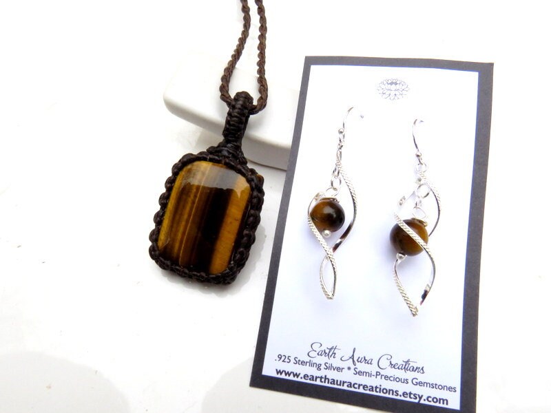 ✨The stone of Optimism ✨ Tiger Eye macramé necklace and earring set - Gorgeous golden Tiger eye - Deep, rich and earthy - a beauty! The twist earrings are .925 sterling silver with a Tiger Eye bead that matches the necklace perfectly! The perfect gift for that special someone (you? 😊)
