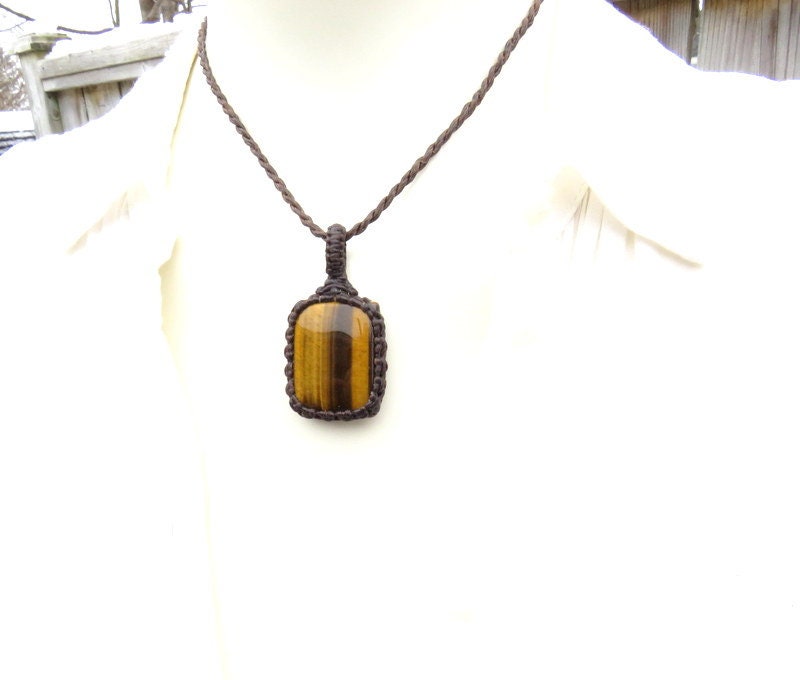 Materials: tiger iron, tiger eye, tigers eye, gemstone, cabochon, waxed cord.