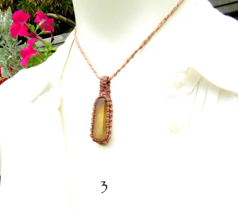 == We wrap or 'set' our semiprecious stones using the art of knot-tying or ' macrame '