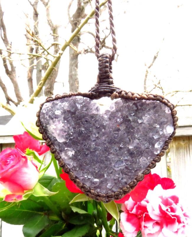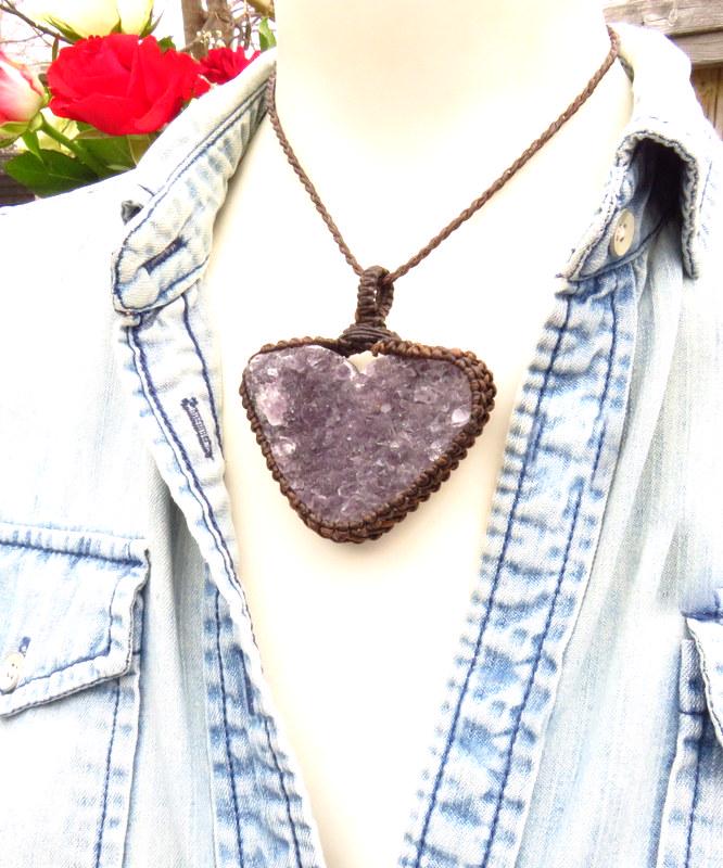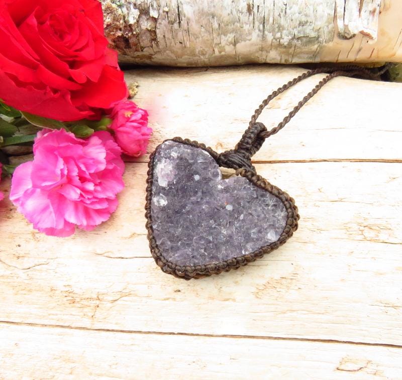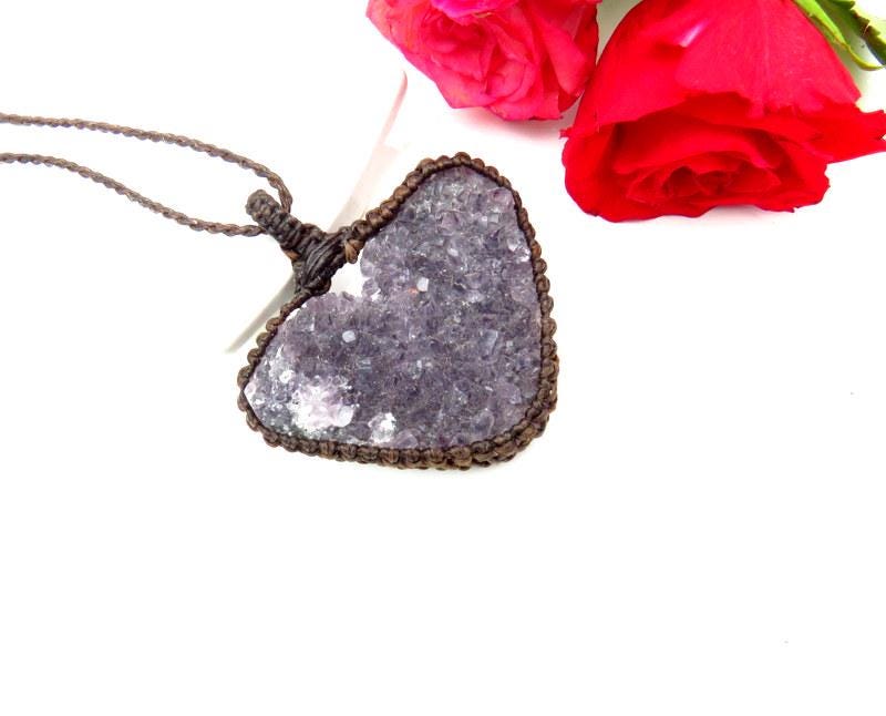 Amethyst druzy heart macrame necklace - deep purple, twinkling Amethyst druzy crystal carved into a gorgeous heart shape 💜 The perfect gift idea for the crystal collector in your life or perhaps the boho beauty 💜