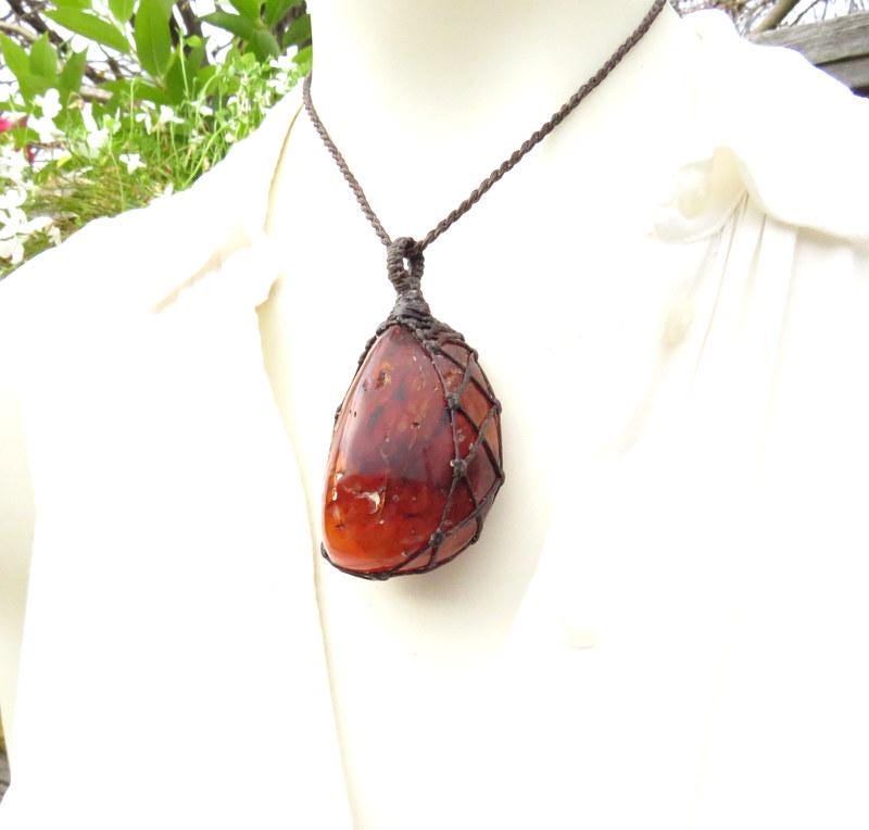 🧡COURAGE & MOTIVATION 🧡 Carnelian macrame necklace - reddish orange with lovely patterns - and reversible! Powerful , positive vibrations! Use carnelian to cleanse your space and energize your spirit. You will receive the exact piece in photos #1-6 and the video.