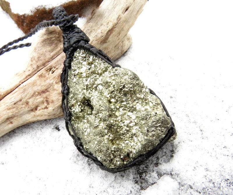 >>>>>>>>>>>>>>>>>>>>>>>>>>>>>>>> ♡ <<<<<<<<<<<<<<<<<<<<<<<<<<<<<<<<<<< ~~~~~~~~~CUSTOMER FEEDBACK ~~~~~~~~~~~~~~~ "Earth Aura my favourite Etsy shop! Their choice of gem stones exquisite and I would order each piece if I could ! You won't be disappointed with any of their pieces." "This necklace is almost to beautiful to be true! The amethyst is exquisite and the craftsmanship/womanship :-) outstanding. It inspires me to know that there are people around putting so much loving care into their work! Thank you! " "So lovely , can feel the positive energy ! And the macramé is so natural and comfortable " Materials: pyrite, crystal, gemstone, waxed cord.