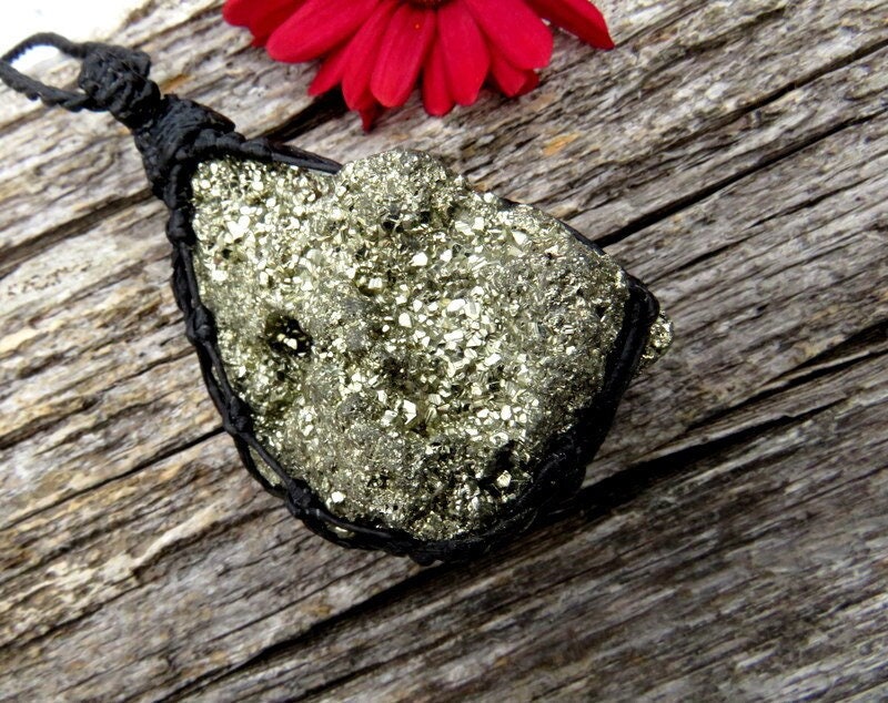 SELF - CONFIDENCE 🙏 Gorgeous Pyrite druzy crystal macrame necklace - Flashy gold Pyrite crystals that twinkle in the light - raw, natural stone - - super chic and eye-catching ! Prettier in person!