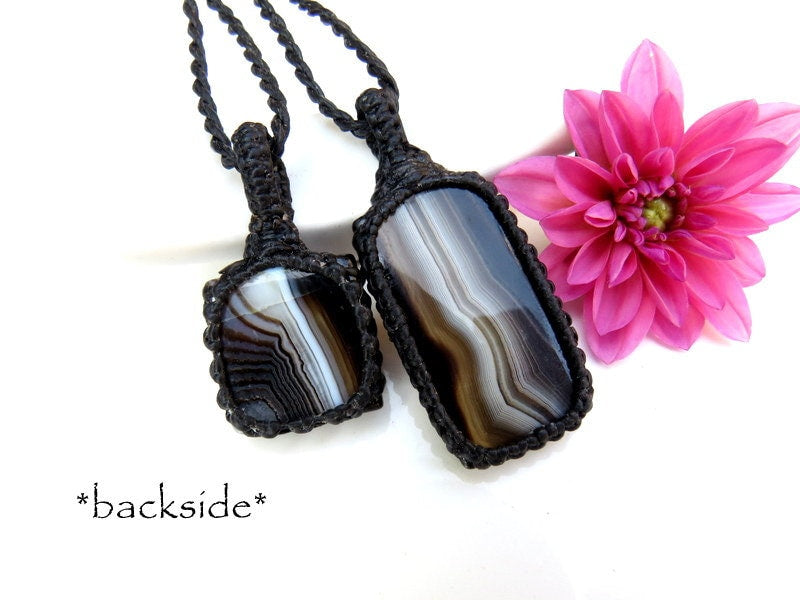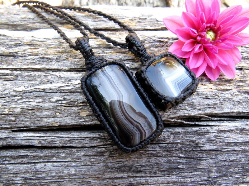✨The stone of Happiness ✨ This listing is for a lovely Sardonyx macrame necklace set - Classic, minimalist style! Gorgeous, shiny black Sardonyx with beautiful banding and patterns. These sets can be worn layered together or worn separately - a lovely idea for best friends and soul-mates - and also a great size for kids! *You will receive BOTH (2) pieces with the cord length of your choosing (IF YOU WISH TO HAVE different lengths, please indicate in the 'notes to seller' box in your cart or send us a message! ) You will receive a beautiful write up describing the healing properties of your new gemstone. *In the listing photos, we are showing the set with the 18 inch and 22 inch cords.
