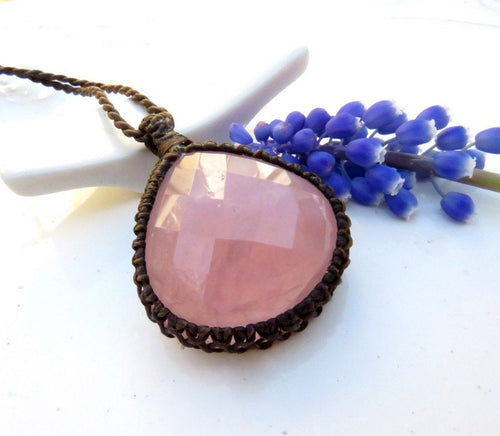 Superb Quality facetedd Rose Quartz macrame necklace - This lovely Rose Quartz crystal is a translucent pink - with a goregous facet cut that gives this gemstone a beautiful twinkle and flash! Gorgeous energy 🌺 An important stone for helping us to raise our vibrations of love and compassion - for ourselves and others ~ : ) You will receive the exact stone in photos #2-7 and the video.