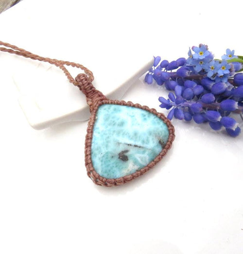 Larimar Macrame Necklace: Caribbean Blue Gemstone Jewelry
