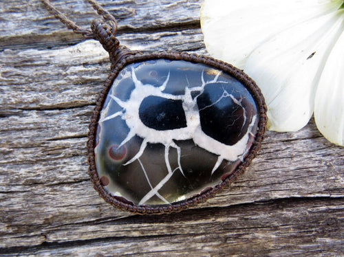 Septarian necklace, macrame jewelry