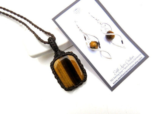 ✨The stone of Optimism ✨ Tiger Eye macramé necklace and earring set - Gorgeous golden Tiger eye - Deep, rich and earthy - a beauty! The twist earrings are .925 sterling silver with a Tiger Eye bead that matches the necklace perfectly! The perfect gift for that special someone (you? 😊)