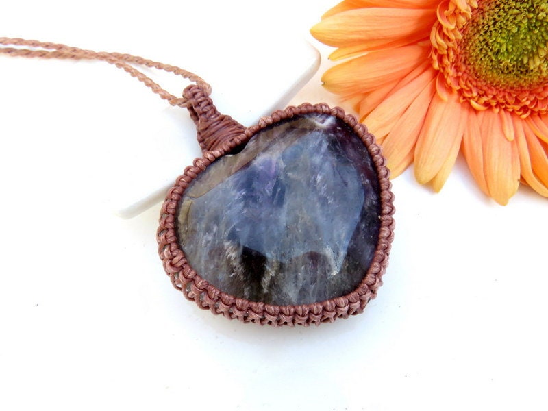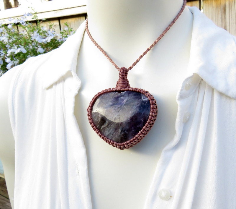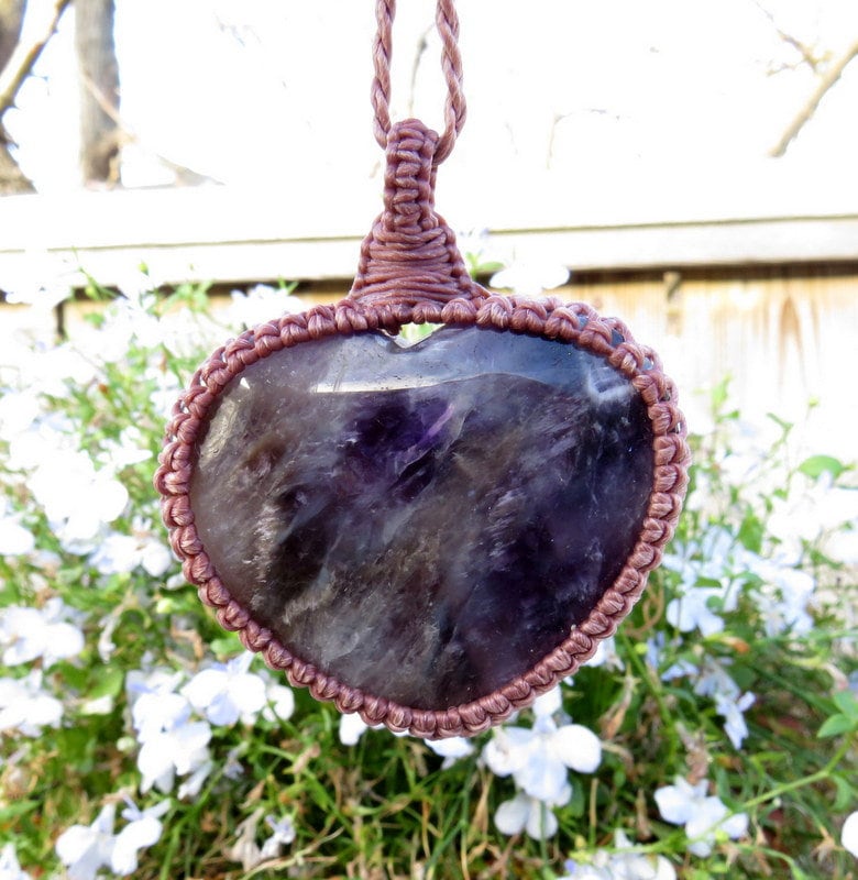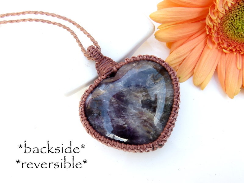 💜CALM , CLARITY & WISDOM 💜Exquisite Dream Amethyst crystal necklace. This gorgeous gemstone is carved into a pretty heart shape, a gorgeous purple color with ba stunning patterns and peek a boo rainbow prisms! A very generous size (statement piece) 💜