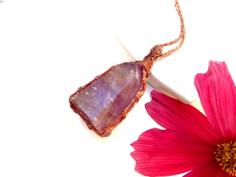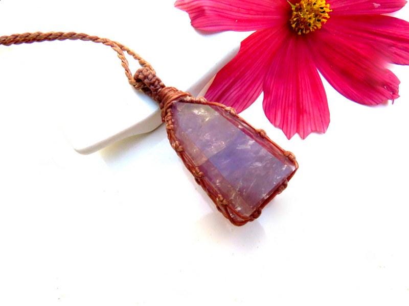 Materials: amethyst, gemstones, semiprecious stones, waxed cord, crystal.