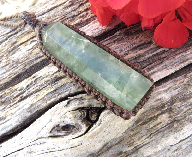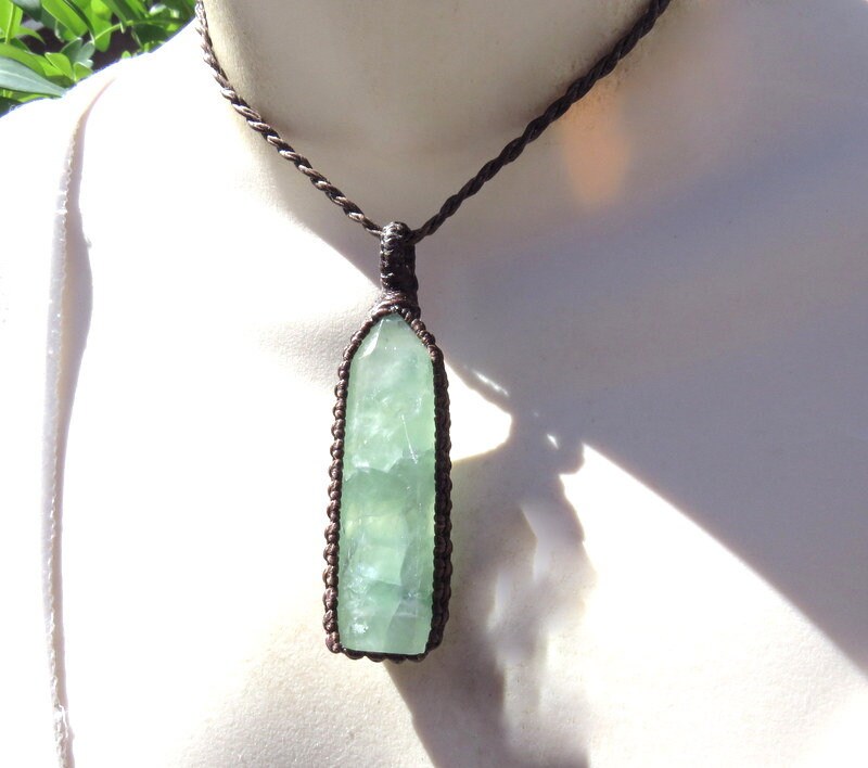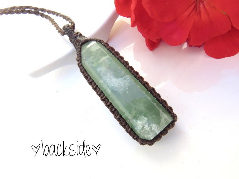 💚FLOW WITH YOUR TRUTH 💚So pretty ! Green Fluorite macramé necklace - soothing and beautiful green Fluorite crystal point - In Latin, 'fluorite' means 'to flow' : ) You will receive the exact crystal in photos #1-7 and the video. *Imperfections including a chip on bottom of backside of crystal .