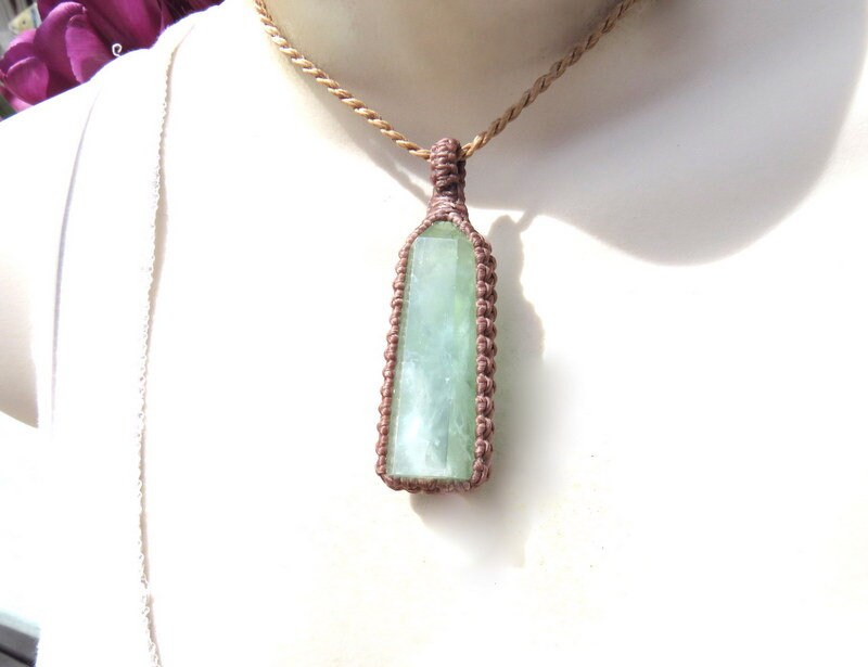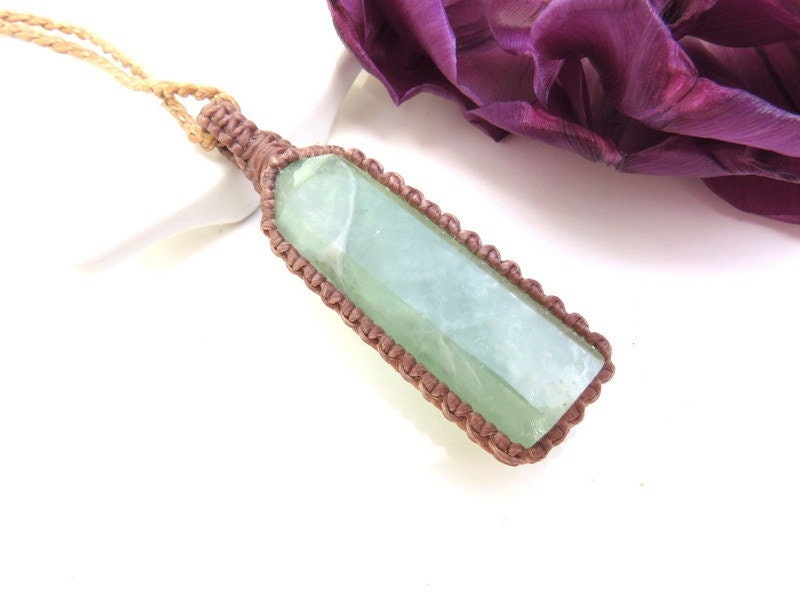 Oh so pretty Green Fluorite crystal macramé necklace - soothing and beautiful green Fluorite crystal point - In Latin, 'fluorite' means 'to flow' : ) You will receive the exact crystal in photos #1-6 and the video 💚